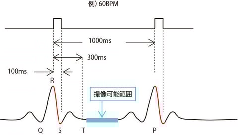 R波〜R波間の心臓が最も静謐な時間は短くその間に、曝射、撮像を行う上で、CTへの同期信号送出遅延は、最適タイミングを失い最終的に画像品質に影響します。